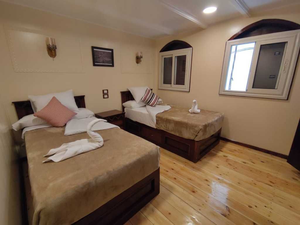 - Cada cabaña es de 10 m² y cuenta con baño privado, aire acondicionado individual y ventanas panorámicas que ofrecen cautivadoras vistas del Nilo.