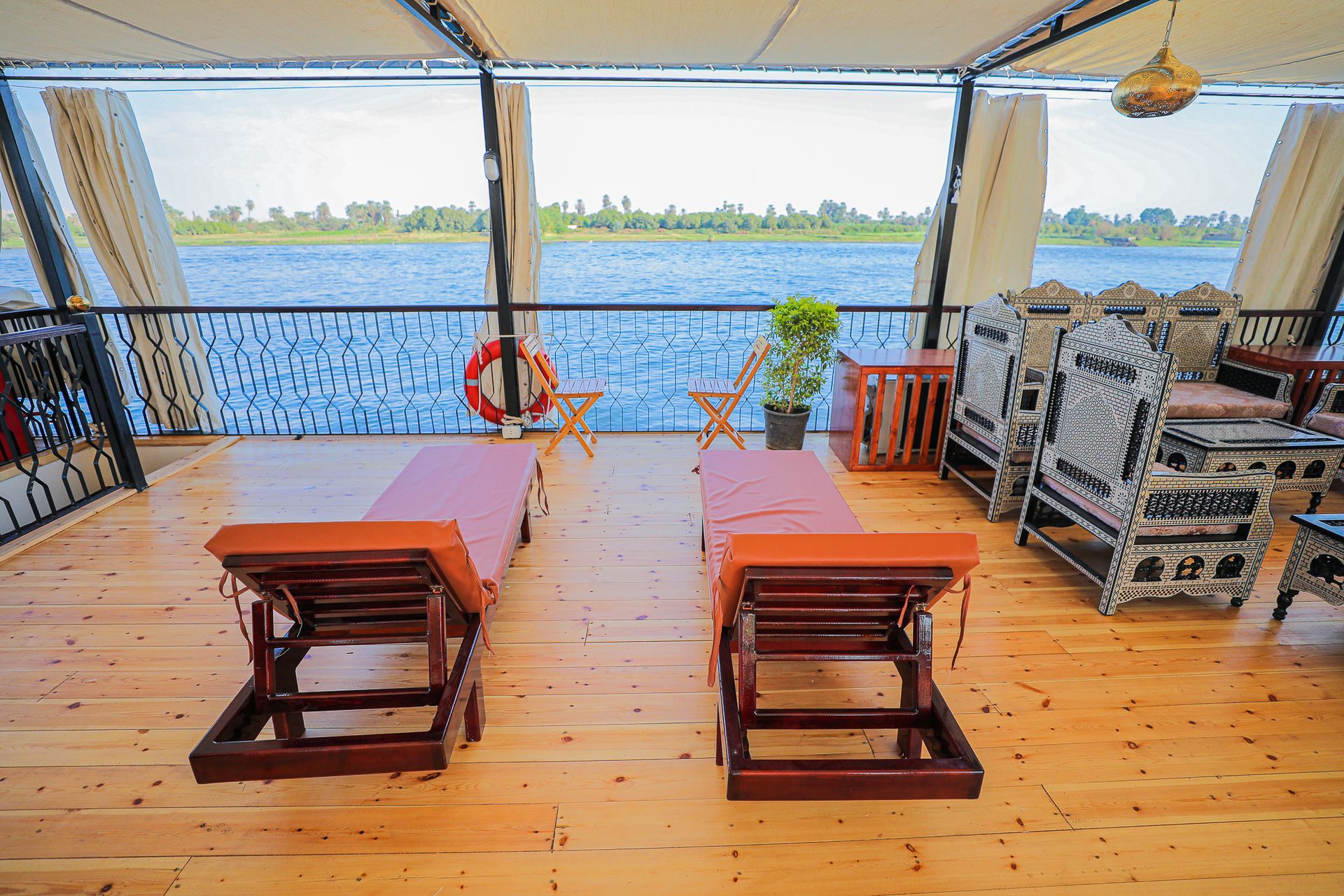 - Salones y Tumbonas al Aire Libre: Disfrute de las impresionantes vistas del Nilo desde nuestras amplias áreas al aire libre.